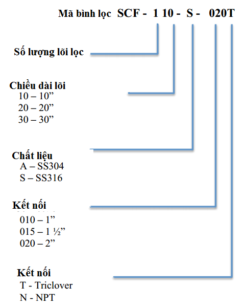 Chất liệu - SS304, SS316 có thiết kế cho các cấu hình lõi lọc khác nhau.