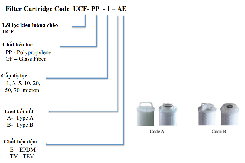 - Lõi lọc xếp nếp kiểu luồng chéo UCF bằng polypropylene và sợi thủy tinh, sử dụng một công nghệ xếp nếp độc đáo để làm cho diện tích bề mặt lớn nhất trong một lõi lọc duy nhất.