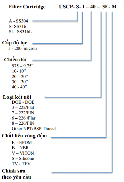 Lõi lọc thép không gỉ xếp nếp - USCP series